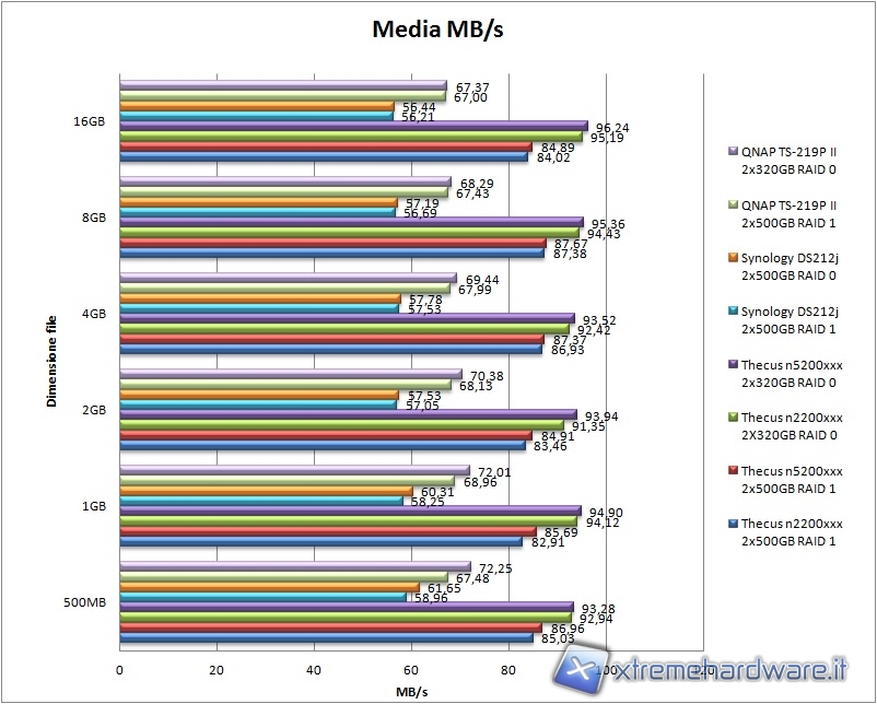 Di seguito riportiamo i dati ricavati effettuando i test e comparandoli con i sistemi Thecus e il Synology.